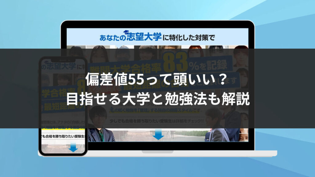 このため、偏差値55の場合、多くの受験生と比べて若干上位に位置することになります。