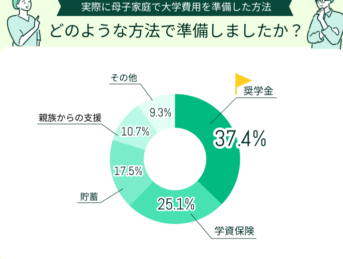 - 奨学金利用率: 母子家庭では奨学金を利用する割合が約40%。
