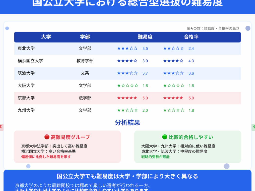 国公立大学の合格率は学校によって異なるが、概ね以下のような傾向が見られる。