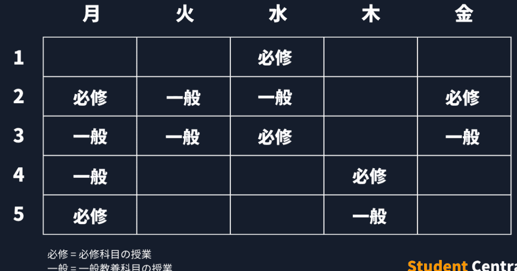 - 特定の学部: 学際的な科目では、独自の時間割が存在することも。