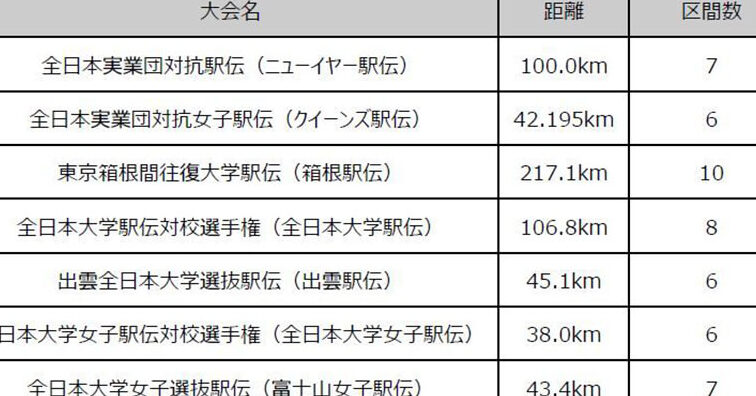 全日本大学駅伝には8つの区間があり、各区間は次のように規定されています。