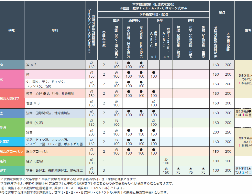 - 理工学部: TEAPスコアは580点以上が求められます。