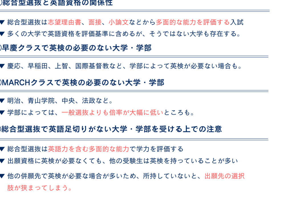 - 成績評価: 学力テストのスコアが足切りの基準となる。