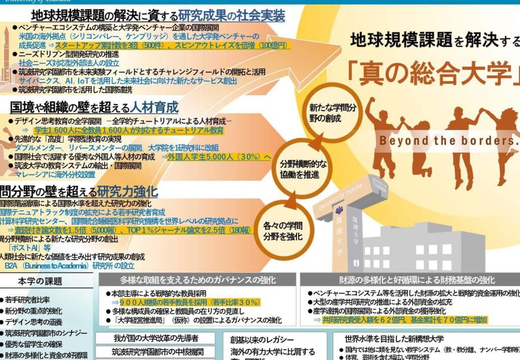 筑波大学は、未来に向けた明確なビジョンを持っています。教育と研究の革新を通じて、社会や世界に貢献することを目指しています。