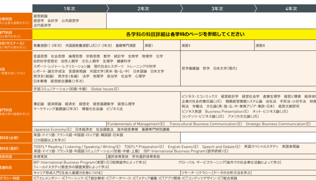 - 国際関係プログラム: グローバルな視点から国際問題を分析し、外交の重要性を理解します。
