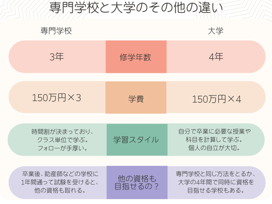 しかし、デメリットもあります。例えば、学費が高く、卒業までにかかる時間も長いです。また、実習の調整が難しい面もあるため、実践的な経験が少なくなる可能性があります。