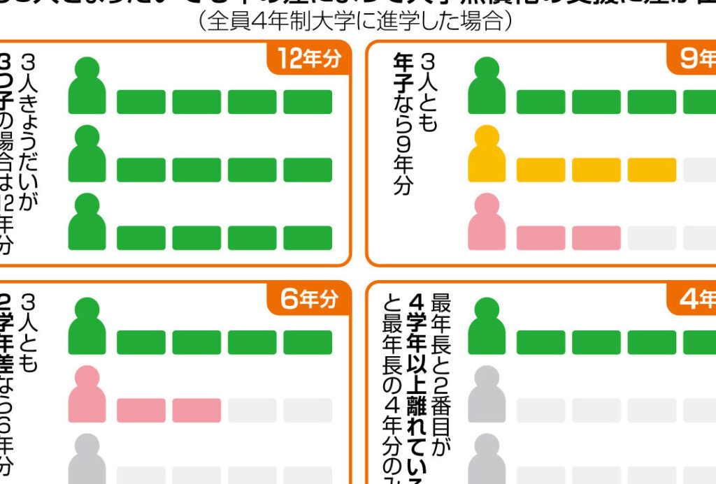 - 学費のゼロ化: 三人目以降の子供が公立大学に通う場合、学費がゼロになる。