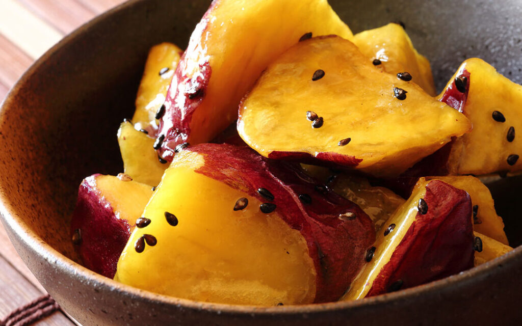 大学芋は、甘みのあるホクホクしたさつまいもを使って作る日本のスイーツです。この人気の食べ物は、サクッとした外側としっとりとした内側のコントラストが魅力です。大学芋の調理方法には、揚げた後に蜜を絡めるスタイルが一般的で、多くの場合、黒ごまや白ごまをトッピングします。