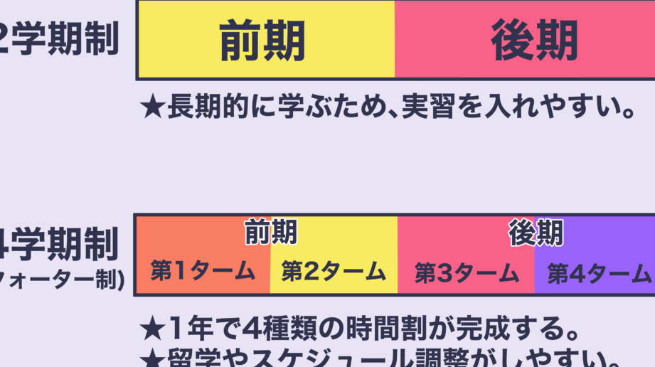 対照的に、大学Bの場合は春学期が3月10日から3月24日までであり、その後すぐに秋学期(9月10日から9月24日)への準備も進められます。このような違いを理解することで、自分自身の計画を立てやすくなります。