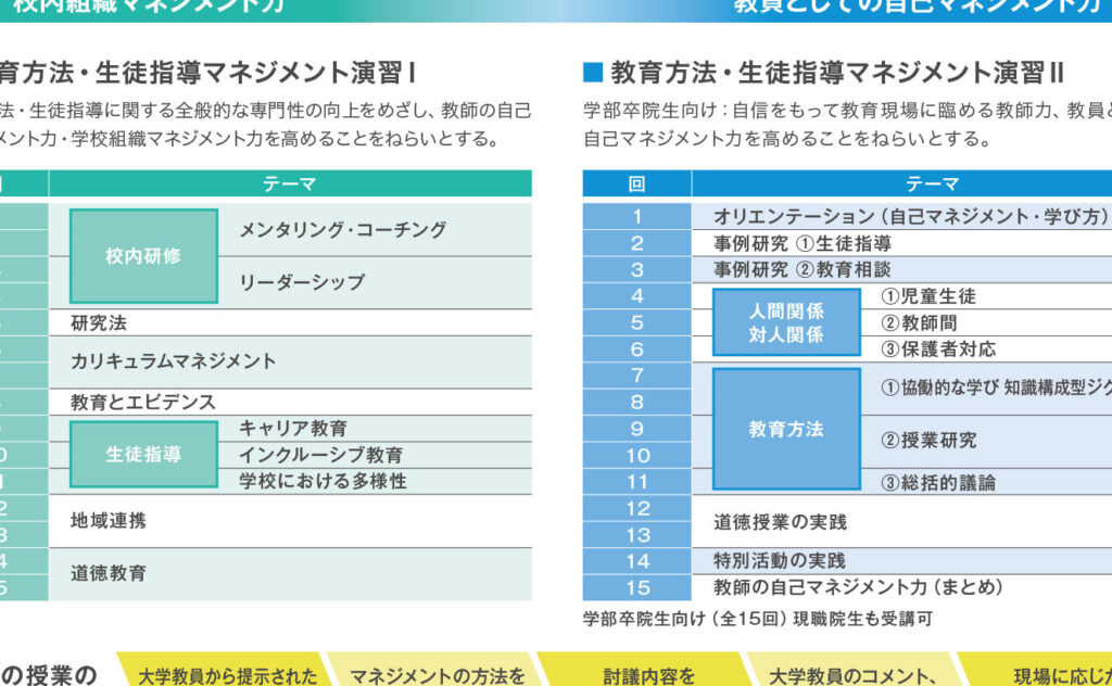 教育大学では、理論と実践が密接に関連しています。授業では以下のようなテーマが扱われます。