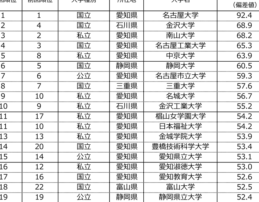 以下は、2023年に発表された金沢大学に関する主要なランキングデータです。