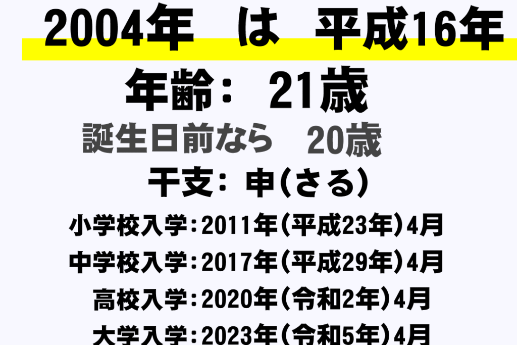 - 高校卒業: 2004年生まれの学生は通常2022年に高校を卒業します。