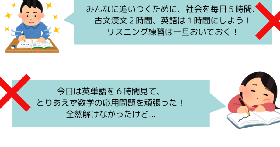 - 過去問演習:志望校対策として過去問題集を利用する。