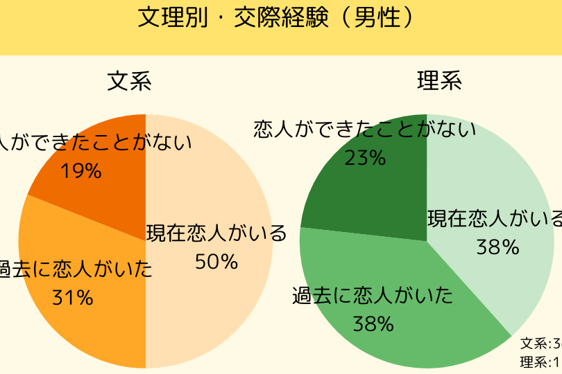 このデータからもわかるように、特に2年生では最も多くの学生が恋人を持っています。一方で、4年生になると就職活動など他の優先事項が増え、その影響で恋愛関係が減少する傾向があります。
