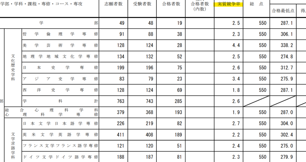 この表からわかるように、商学部は高い合格率を誇り、多くの学生にとって関西学院大学で入りやすい選択肢となっています。
