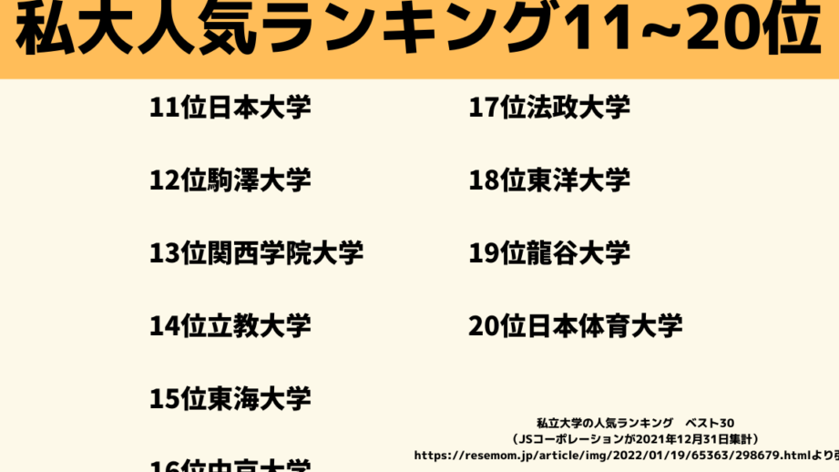 私立大学のランキングと偏差値