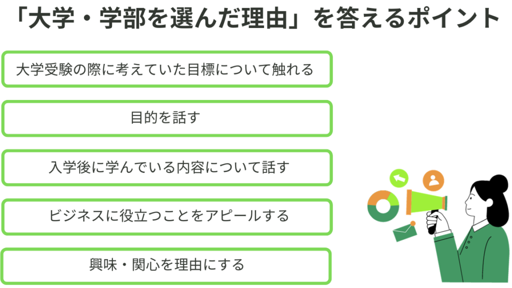 - 学問的興味:どの専攻やコースに魅力を感じているか。
