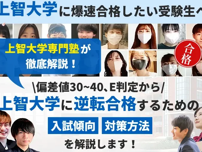 上智大学の二次試験では、多くの場合複数科目が出題されます。それぞれの科目によって特徴や配点も異なるため、個別対応する必要があります。私たちがおすすめする対策方法は以下です: