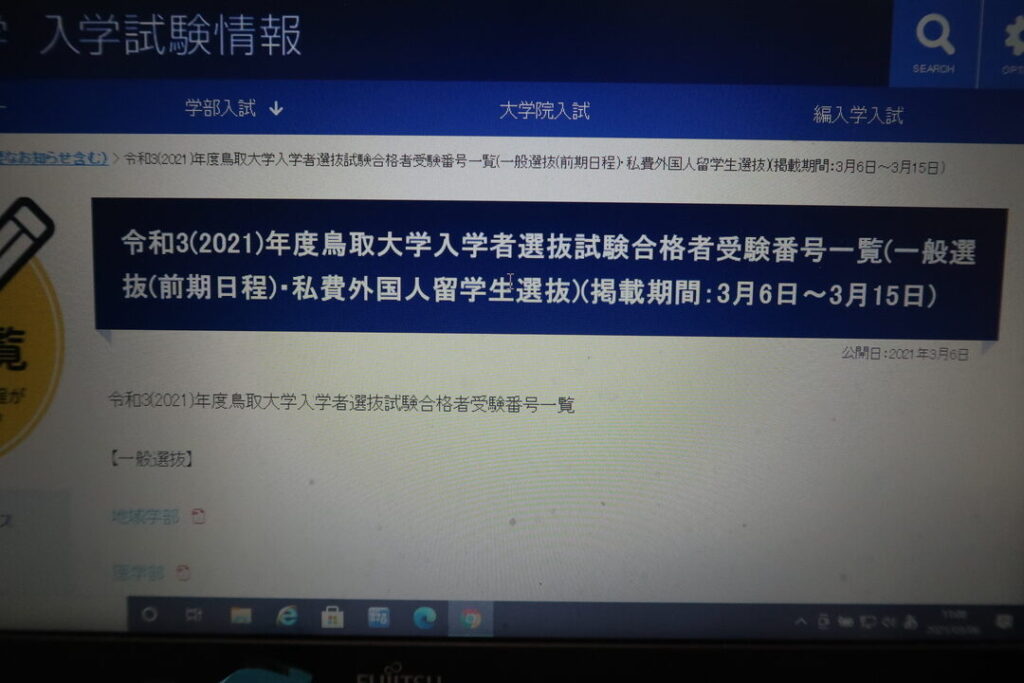 鳥取大学 合格発表 何時から確認する方法