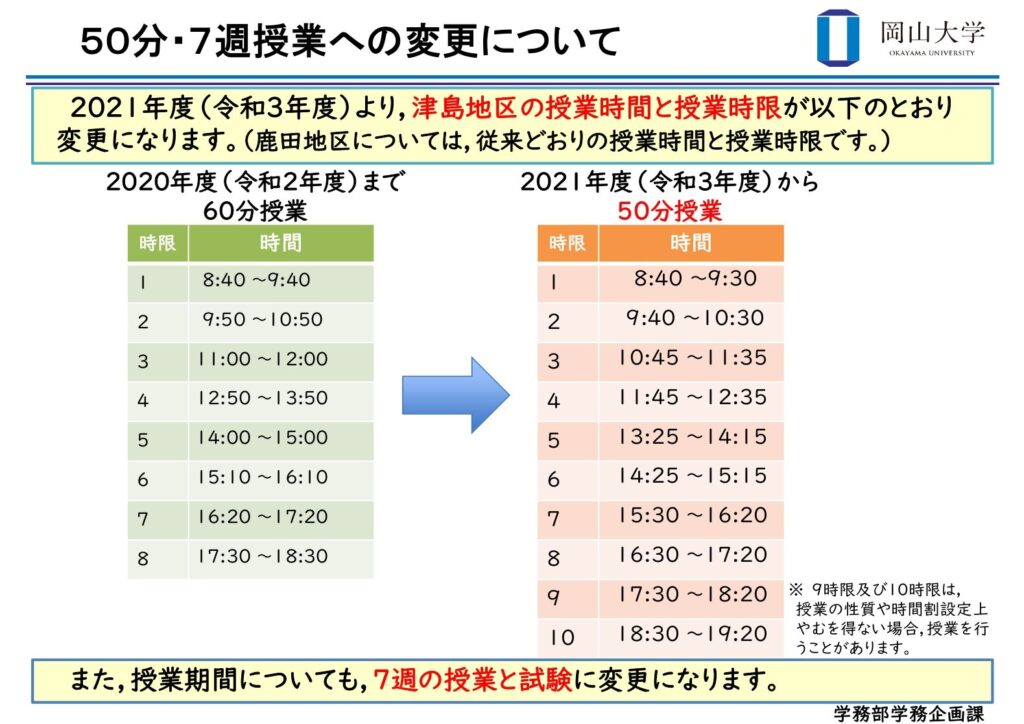 学期ごとの授業開始時間について