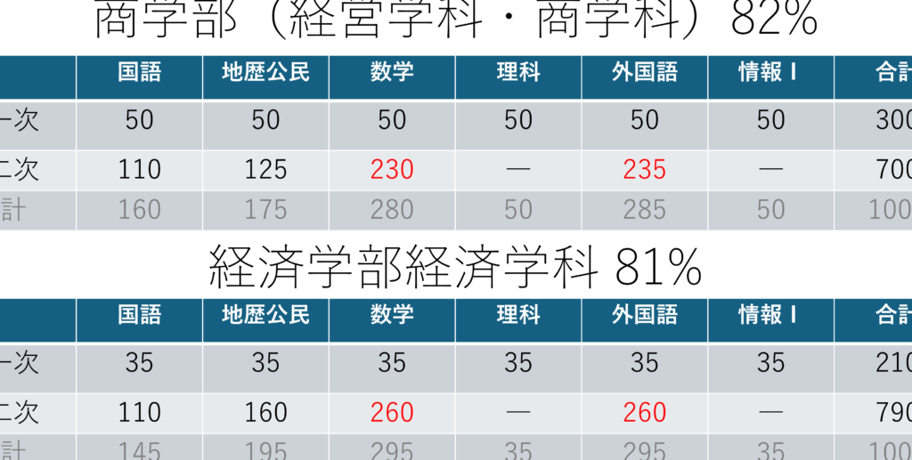 | 大学名 | 必要得点割合 |