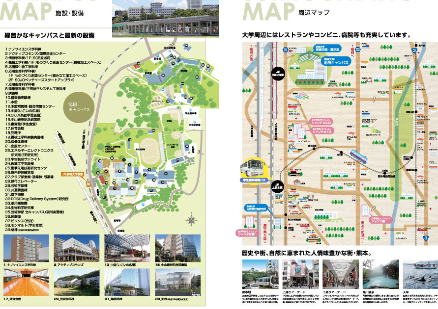 - 国道57号線: 熊本市内中心部から直進し、約30分程度でキャンパスに辿り着けます。