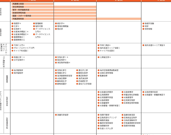東京海洋大学では各学部ごとに異なるカリキュラムが組まれており、それぞれ次のような特徴があります: