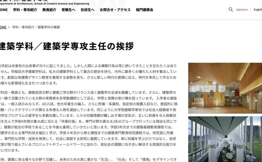 業界経験豊富な教授陣 : 多くの場合、著名な建築家や研究者が教壇に立ち、生徒へ最新情報や技術動向を伝えます。