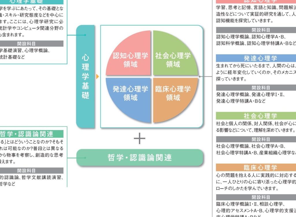 まず最初に確認すべきは、各大学が提供している心理学コースの具体的な内容です。心理学には多様な専門分野があり、それぞれ異なる視点から人間行動や心の働きを探求します。以下は主な専門分野です。