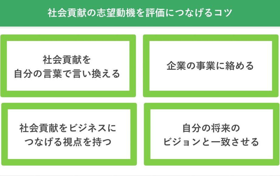 - リーダーシップ: ビジョンや使命感を持ったリーダーとして活動することで、チームや組織全体で社会貢献につながる行動を促進できます。