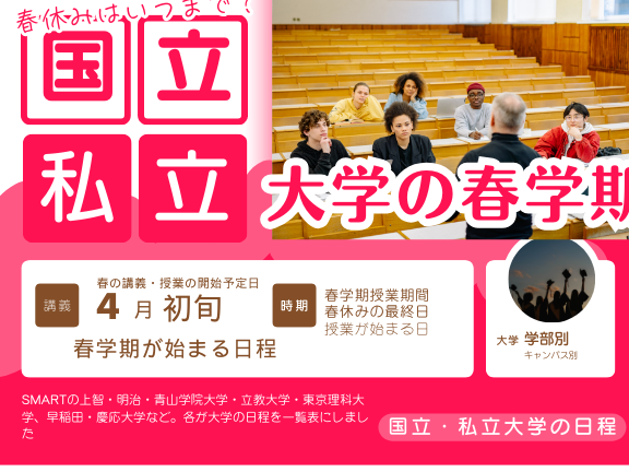 - 授業開始日: 各大学指定の日(例: 東京大学 4月1日)