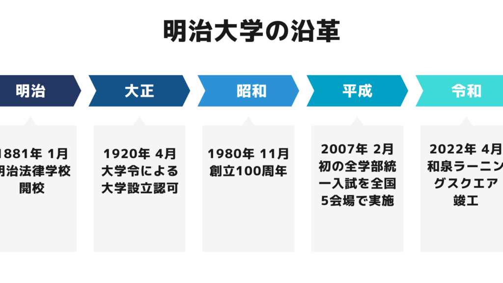 私たちは、明治大学の歴史とその重要性を理解するために、さまざまな視点からアプローチしています。このセクションでは、学びの場としての明治大学がどのように発展してきたか、またその教育理念や特色について詳しく見ていきます。特に、日本社会における教育機関としての役割や影響についても掘り下げます。