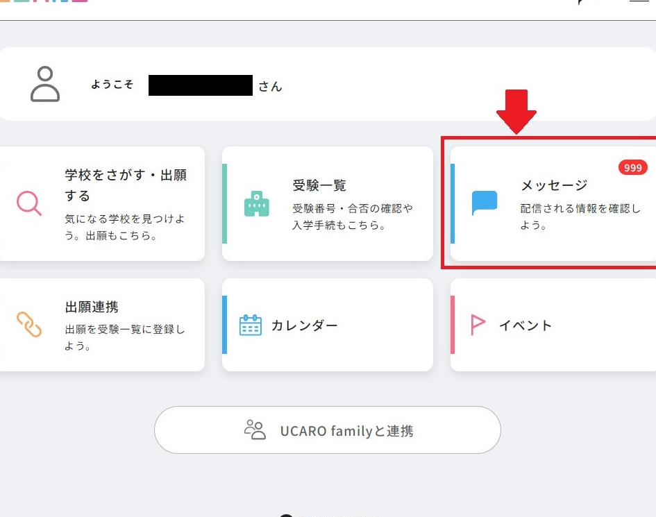 - メニュー選択: 「受験票」セクションを見つけ、そのリンクをクリックします。