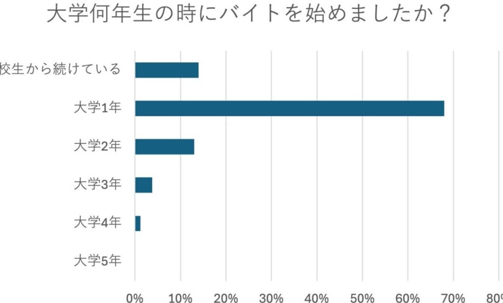 - 環境への適応: 新しい授業や友人関係に慣れる中で、アルバイトも同時に経験できるため、ストレスが少ない。