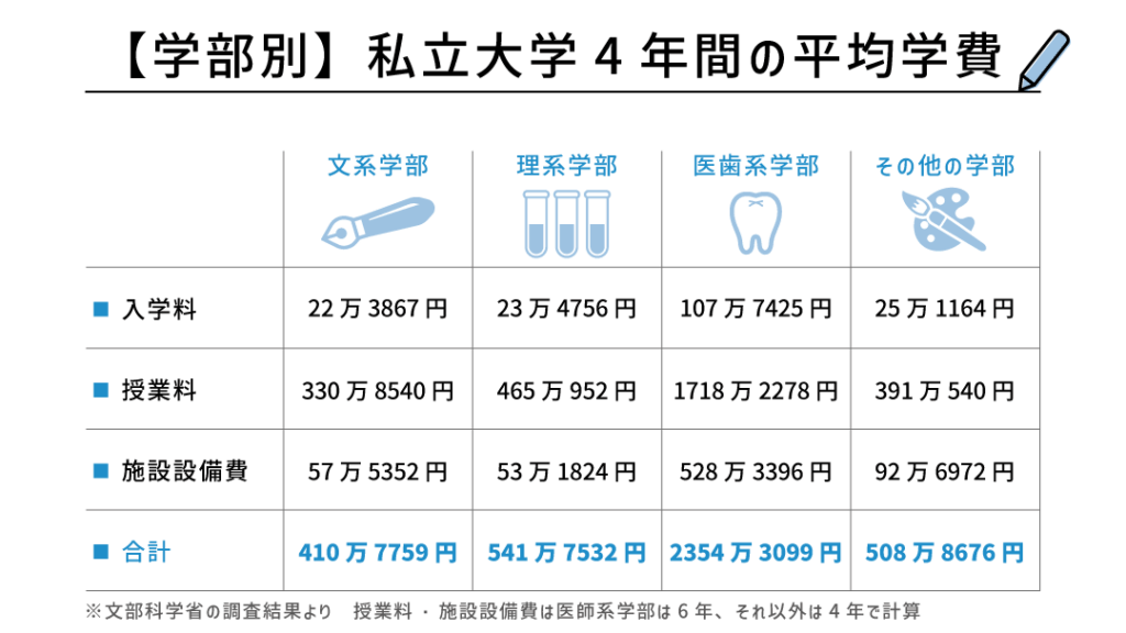 - 地域差: 地域によって生活水準や物価が異なるため、都市部と地方で学費にも違いがあります。