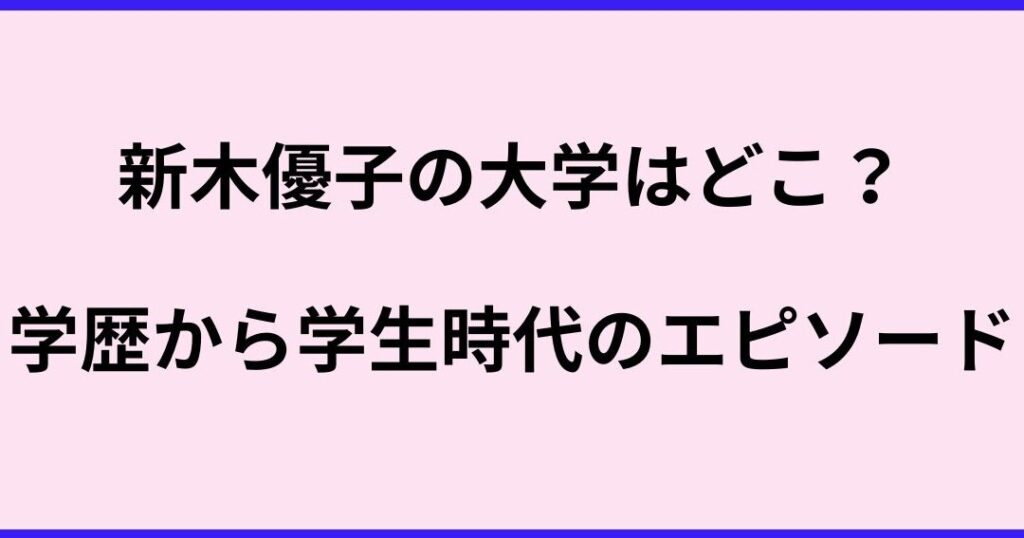 新木優子さんは多くのファンを持つ人気女優です。彼女の魅力的なパフォーマンスや独自のスタイルに惹かれる人が増えています。私たちは「新木優子大学どこ」という疑問について深く掘り下げていきます。この質問には彼女の学業とキャリアに関する興味深い情報が隠されています。