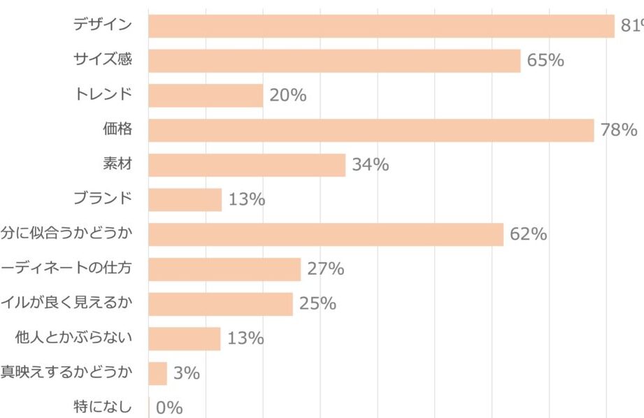 - 好みの色: 自分が好きな色は何か。その色は他のアイテムと組み合わせやすいか。