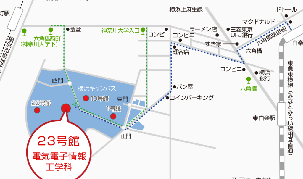 大学周辺にはさまざまな施設があります。以下はその一例です:
