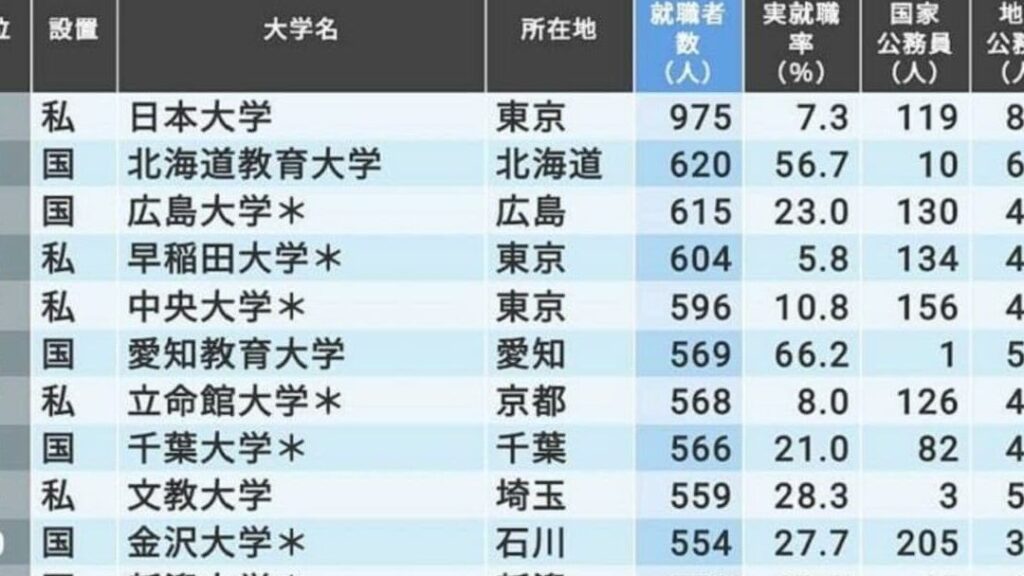 こちらの表からわかるように、東京大学は高い就職率と驚異的な満足度を誇っています。これは、その教育実習やカリキュラムが学生にとって非常に有益であることを示しています。一方で、他の優秀な教育機関もそれぞれ特色あるプログラムを提供しており、多くの場合、高い評価を得ています。