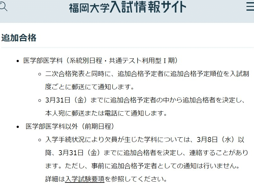 福岡大学の合格発表は通常、以下の日程で行われます: