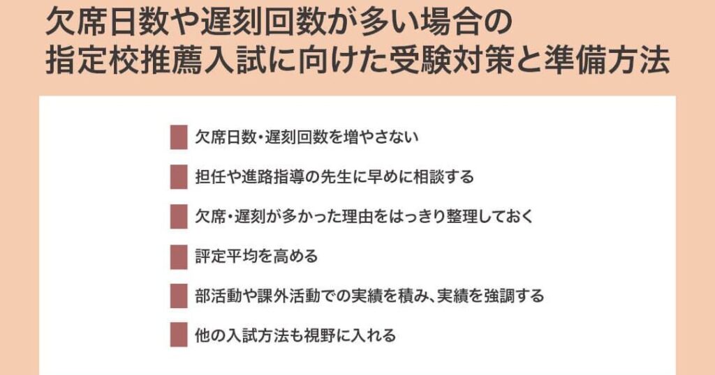 - 出席率:欠席日数も考慮されるため、なるべく出席することが重要です。